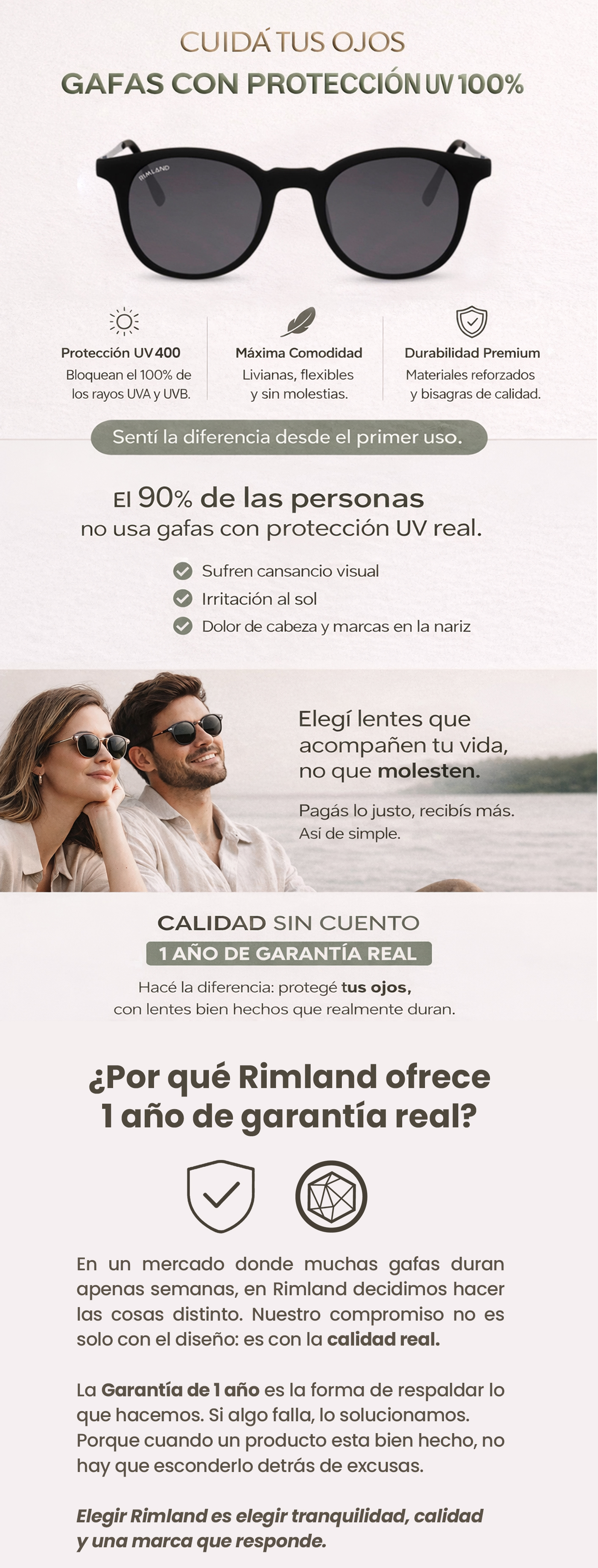 Estuche rígido de cuero - Paño de microfibra - Packaging exclusivo Rimland - Stickers - Certificado de garantía.
